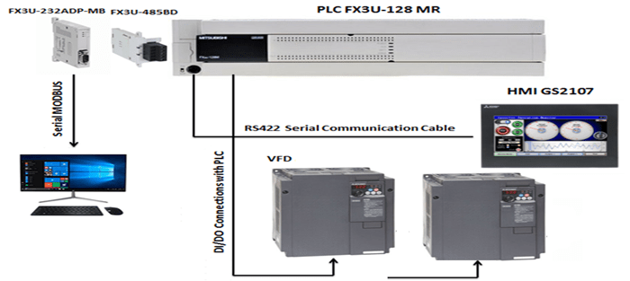 - System with 128 DI/DO, VFD & SCADA